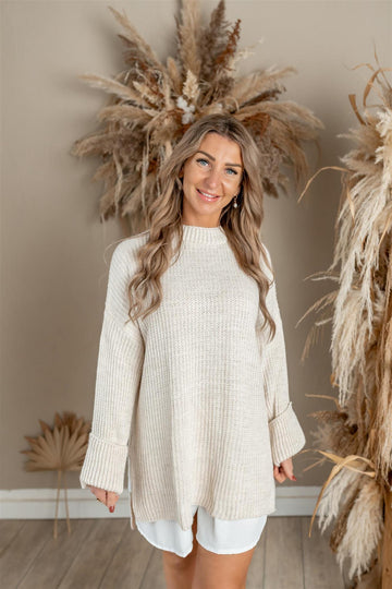 Größenempfehlung S-3XL gestrickter Oversized-Pullover am Handgelenk gerafft, Kragen kann hoch getragen oder gefaltet werden Maße:...