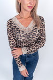 Langarmshirt Leo mit V-Ausschnitt & Spitze