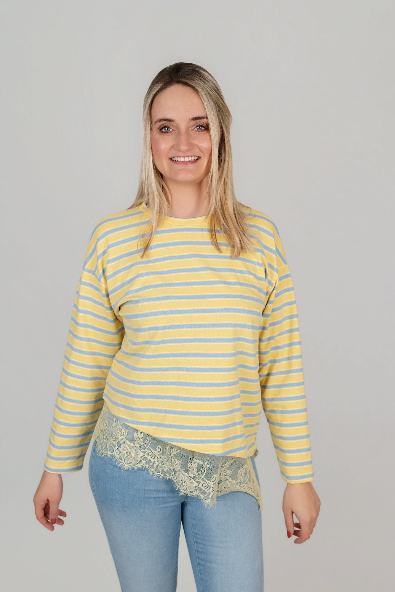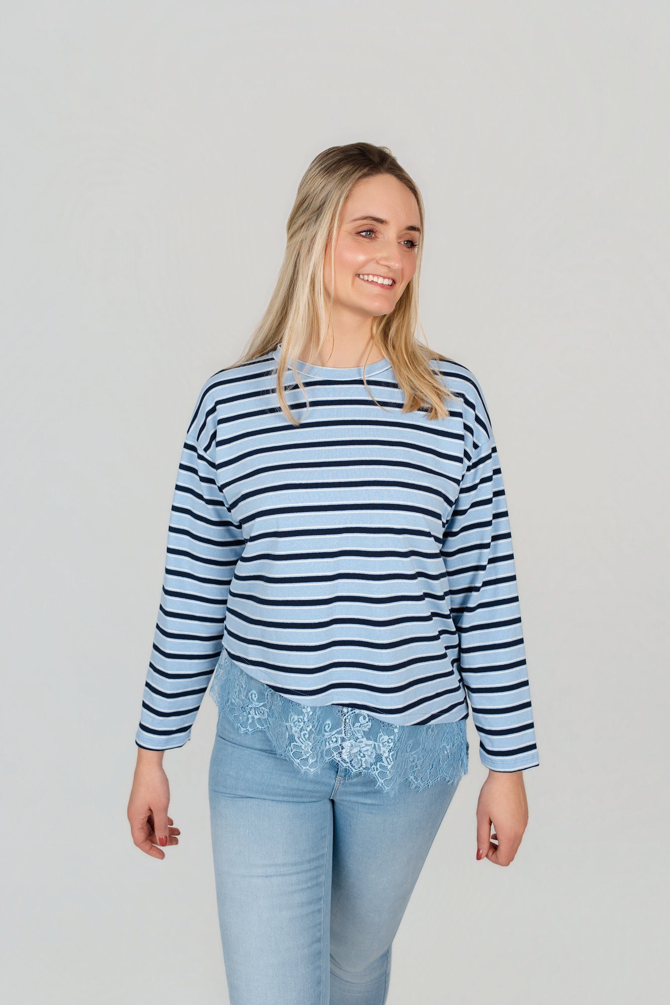 Pullover gestreift mit Spitze