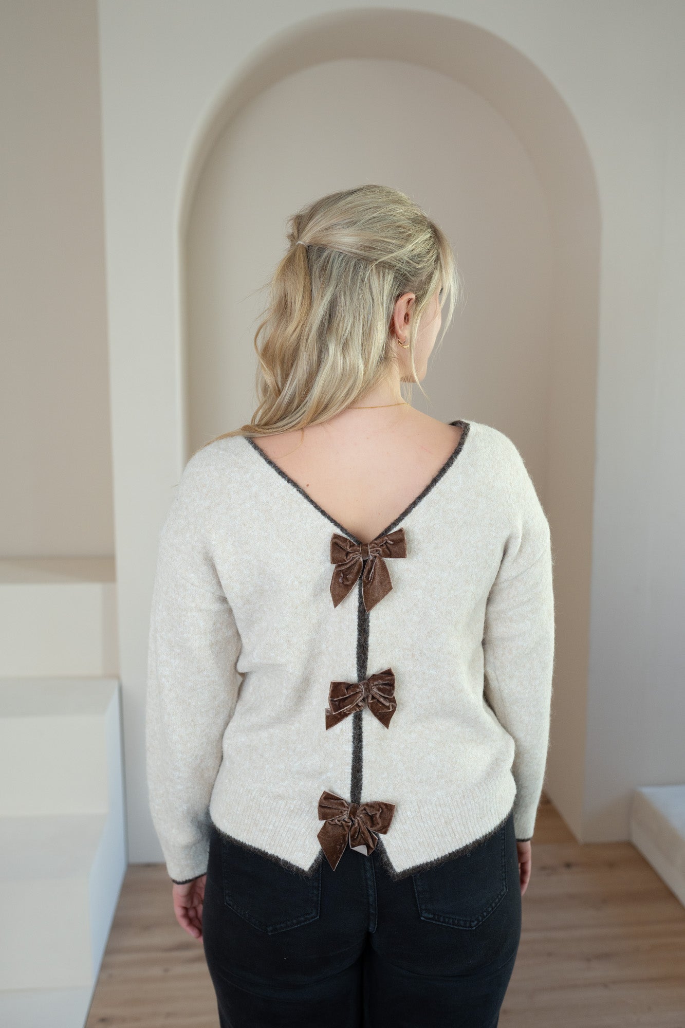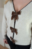 - Muliway-Pullover mit V-Ausschnitt und Schleifen aus Samt