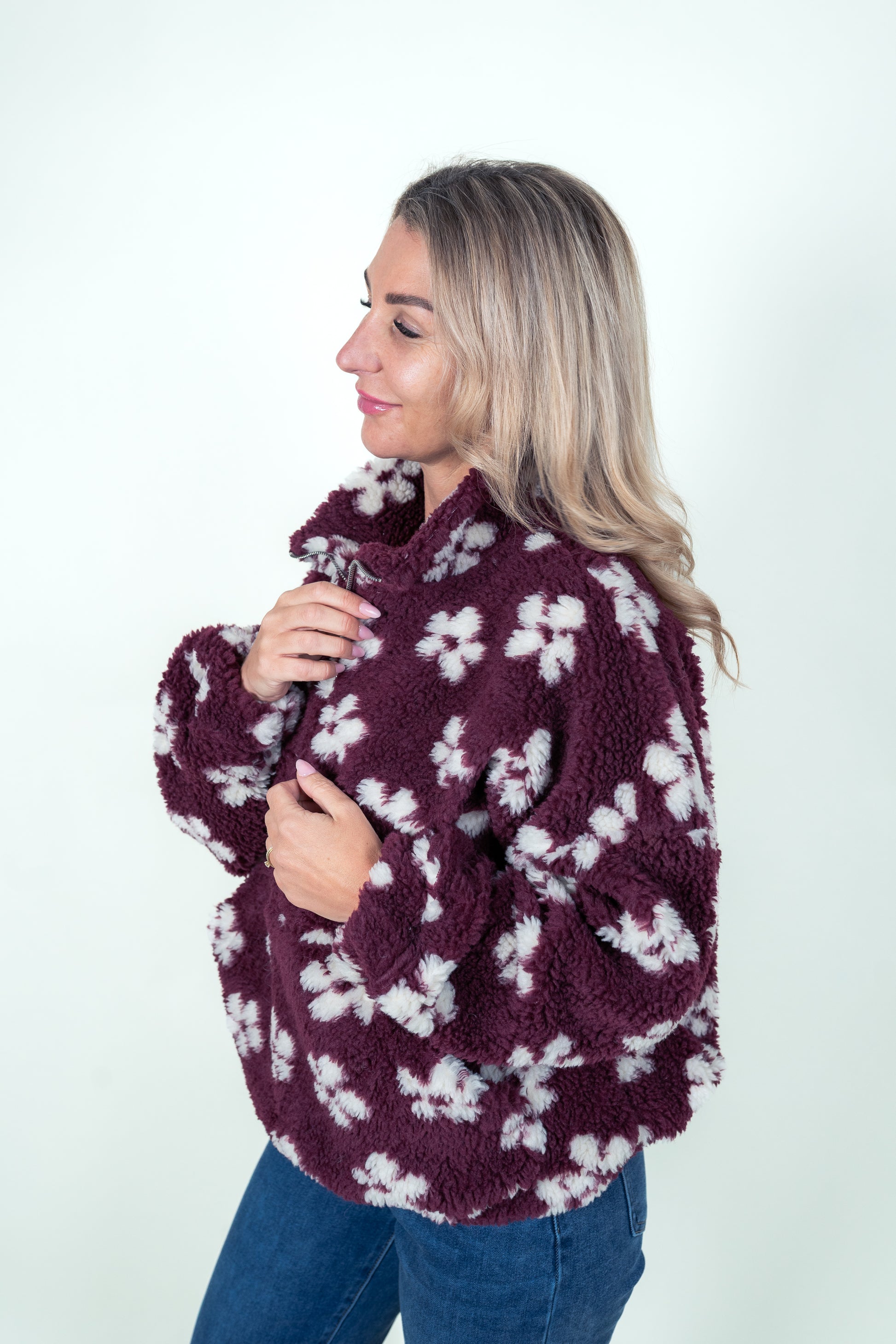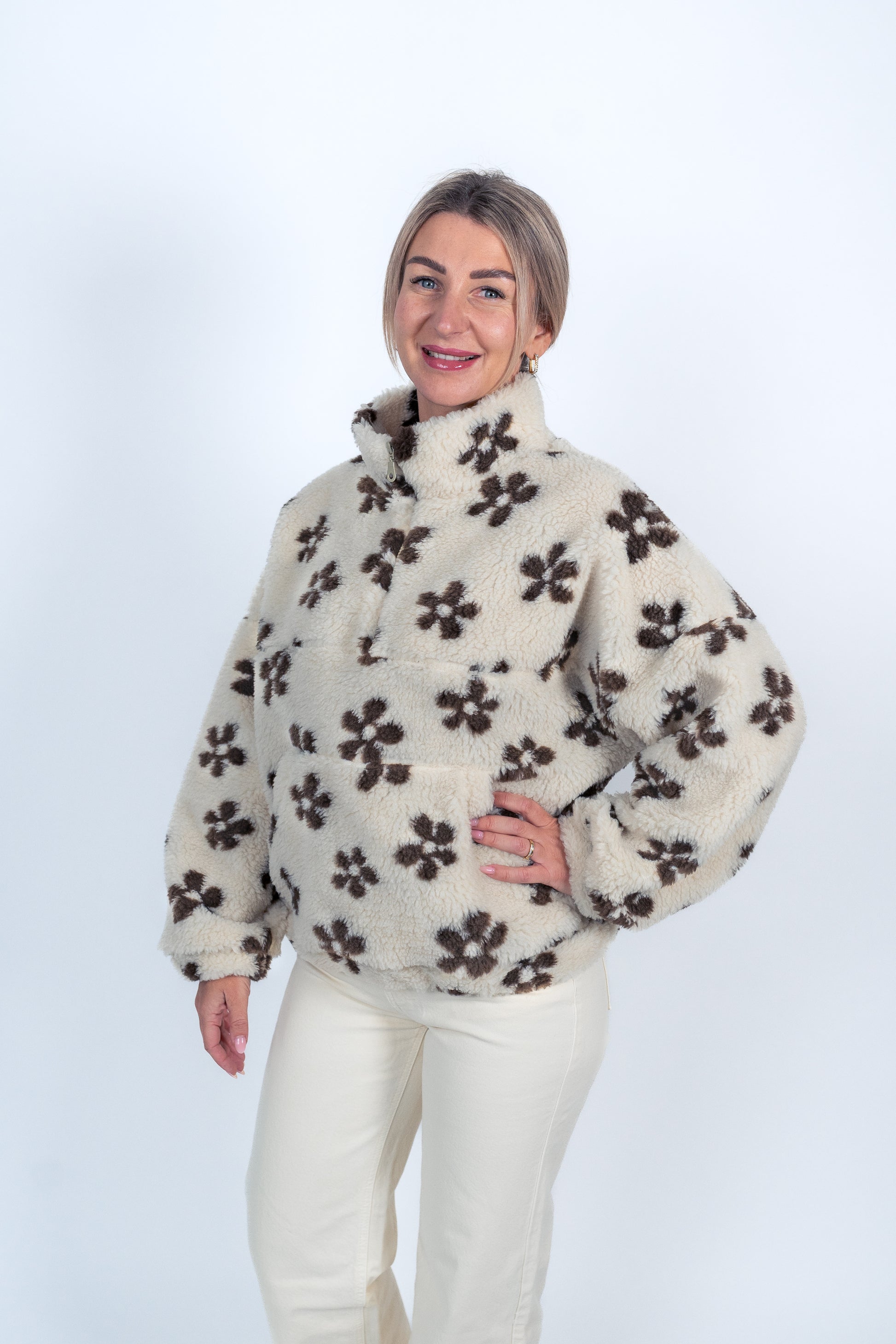 Sweater in Teddyfleece Blumen