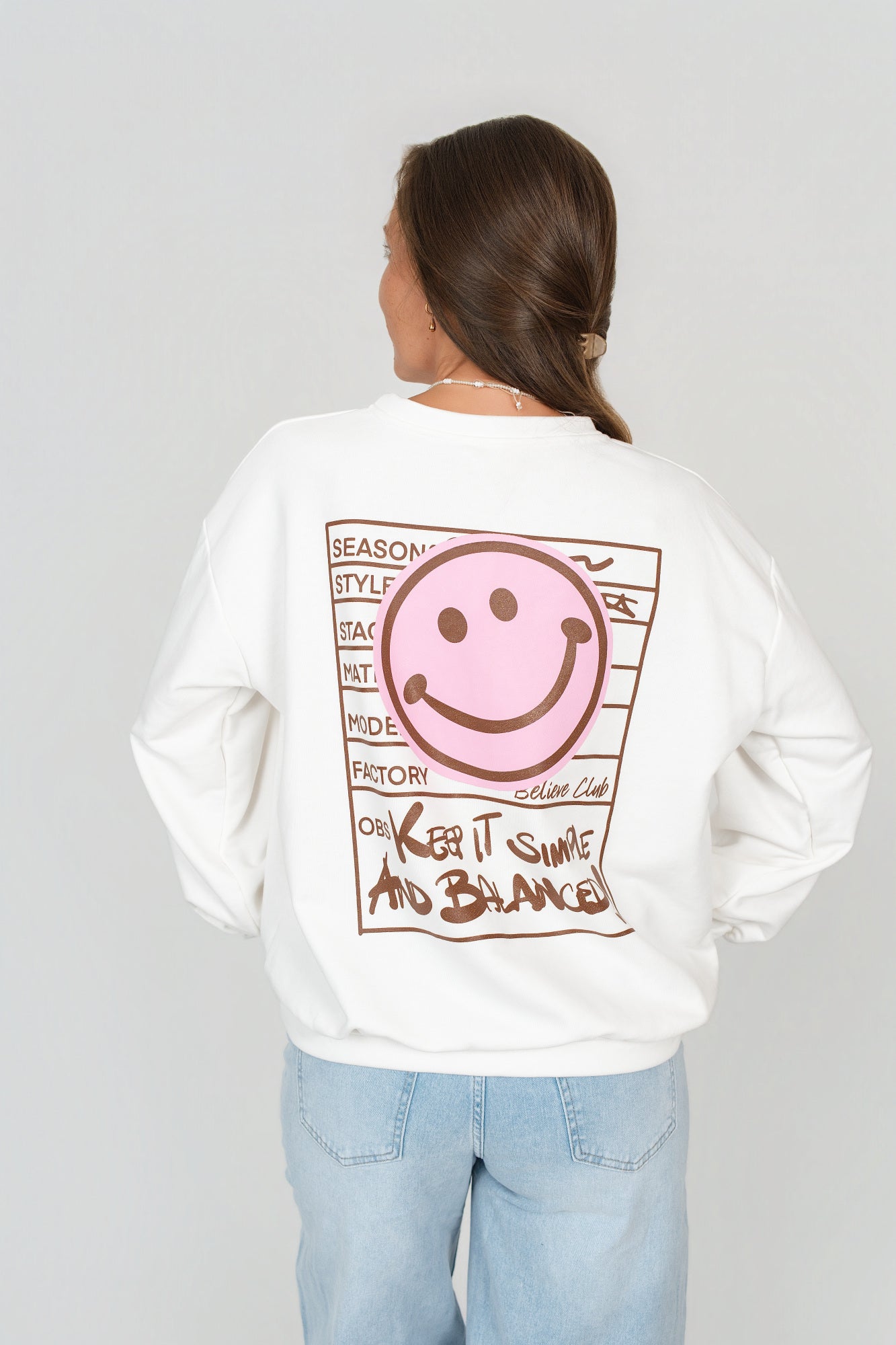 - Kleiner Smiley-Print auf der Vorderseite, groß auf der Rückseite