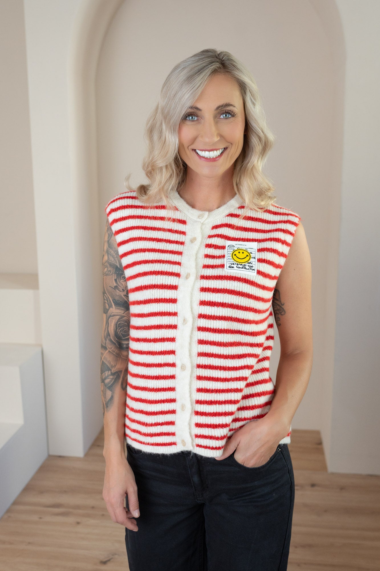 - gestrickte Weste mit Smiley auf der Vorderseite